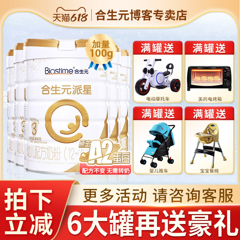 券 10元销量27特惠装】合生元旗舰派星A2幼儿配方奶粉3段800g6罐900g适合1-3岁