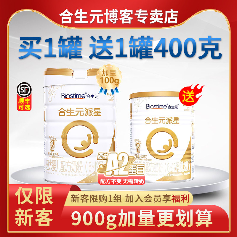 券 10元销量26【特惠组合】合生元奶粉派星2段 A2蛋白较大婴儿奶粉900g官方旗舰