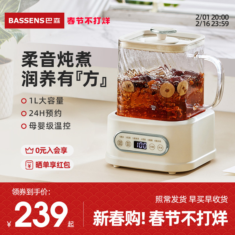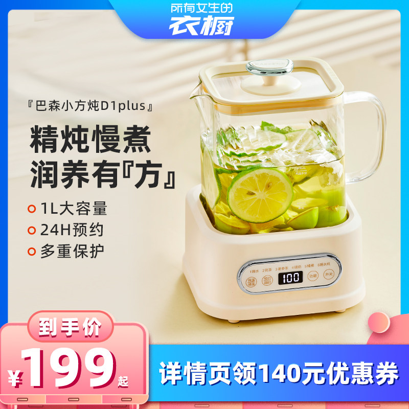 巴森小方炖养生壶家用多功能全玻璃煮茶器烧水壶小型办公室花茶壶