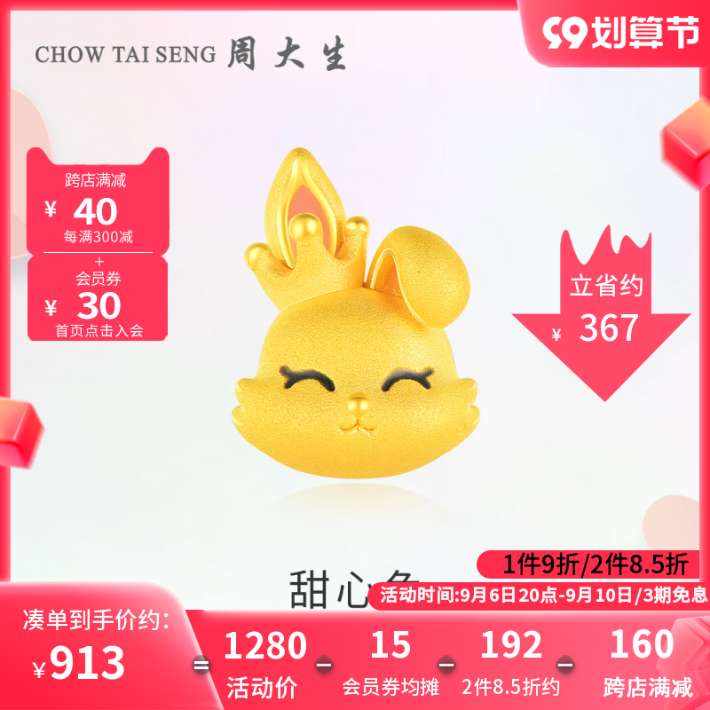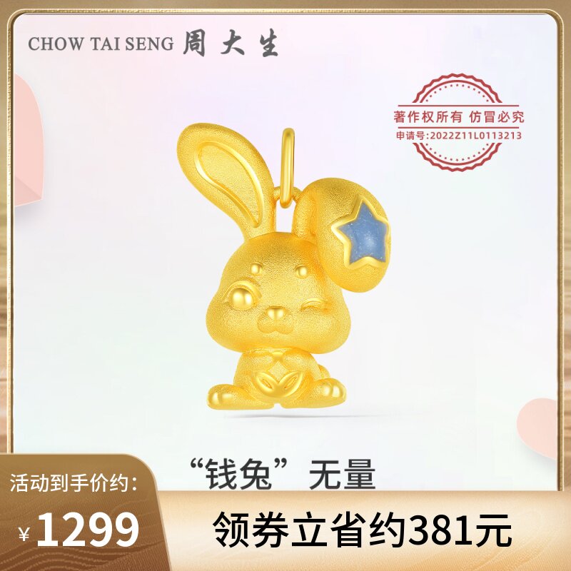 券 445元销量10周大生黄金首饰本命年钱兔无量生肖兔吊坠3D硬金珐琅挂坠送女友礼