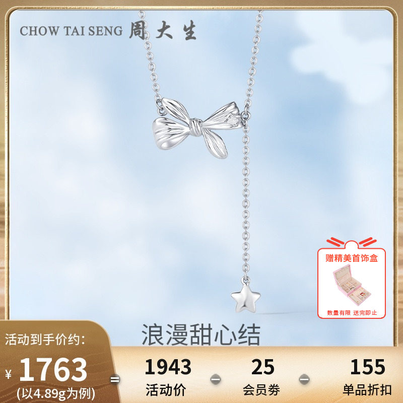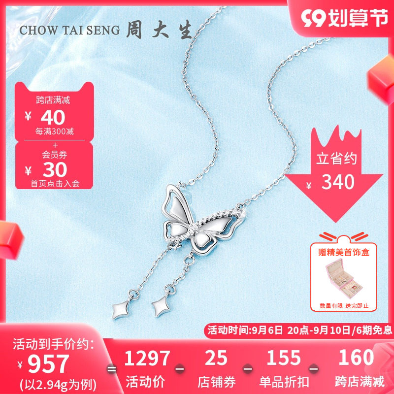 券 150元销量18周大生白金PT950铂金蝴蝶结项链女套链轻奢设计感送女友生日礼物