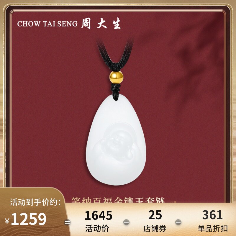 券 150元销量4周大生任嘉伦和田玉挂坠弥勒佛吊坠女玉雕挂坠金镶玉送女友礼物