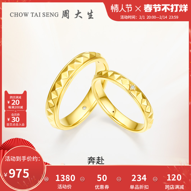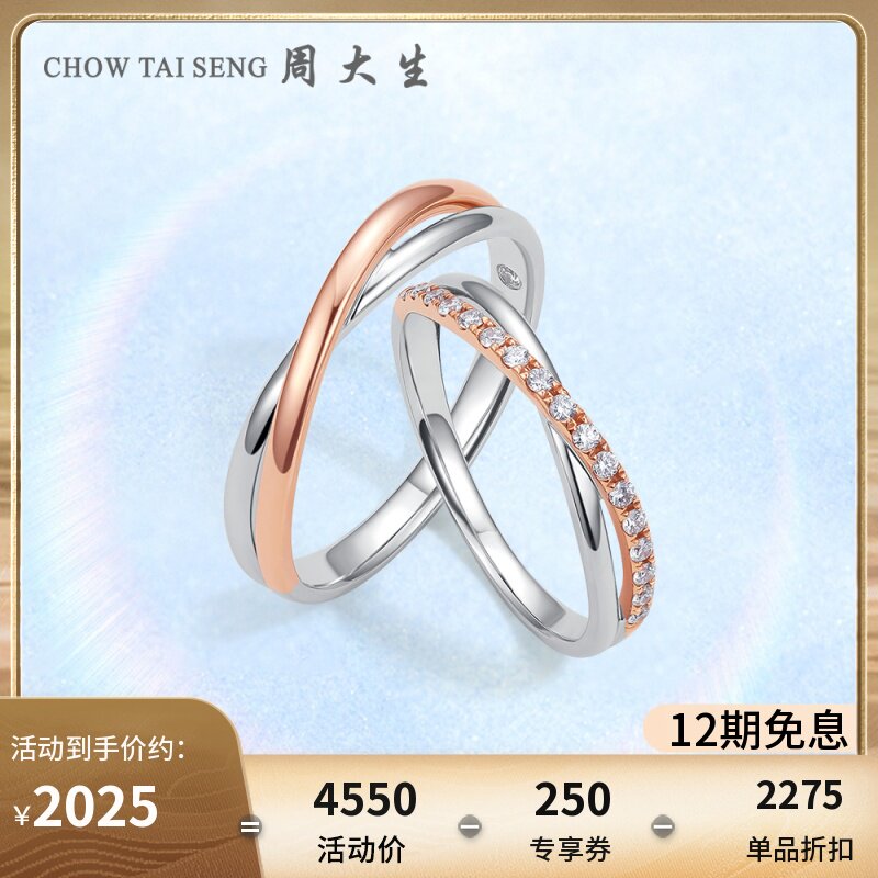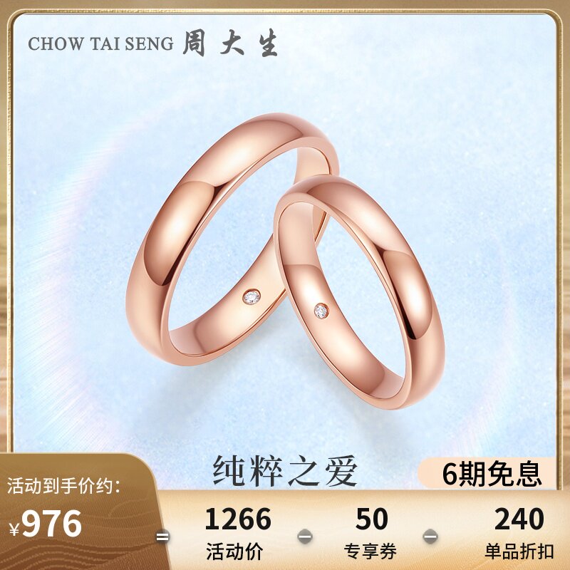 券 50元销量10周大生奔赴钻石对戒黄18k金钻石戒指玫瑰金钻戒情侣戒指新年礼物