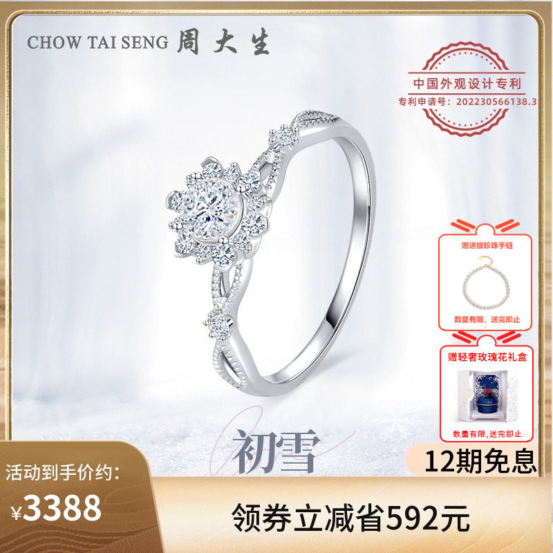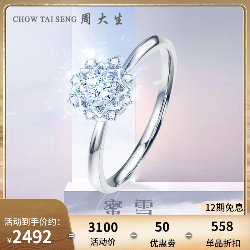 券 50元销量50周大生蜜雪钻戒女18K金手捧花雪花求婚钻石戒指送女友节日礼物
