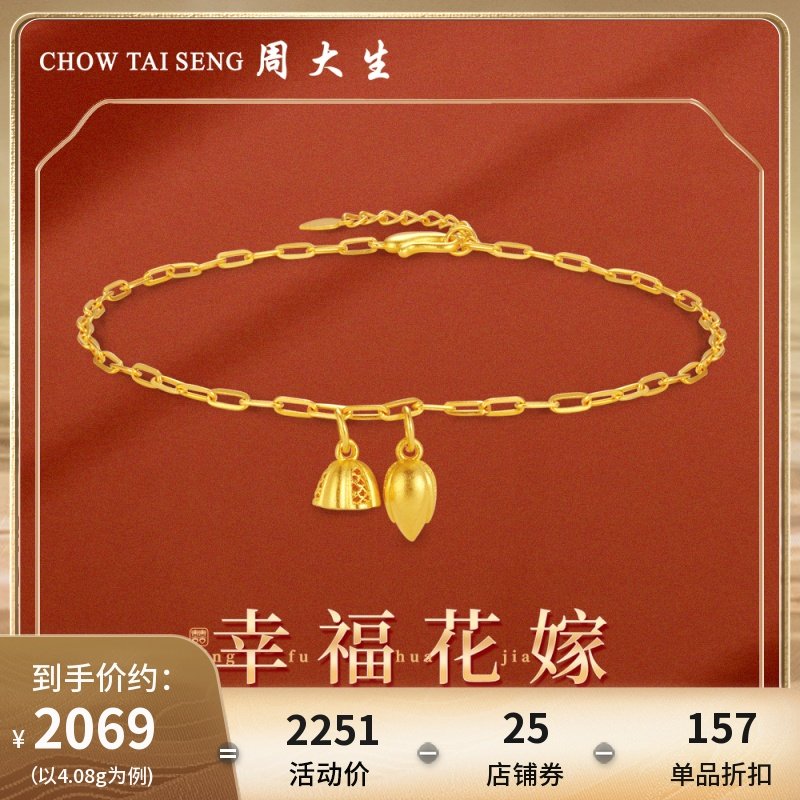 券 150元销量14周大生黄金手链女足金古法幸福花嫁两世欢莲蓬手串婚嫁三金首饰
