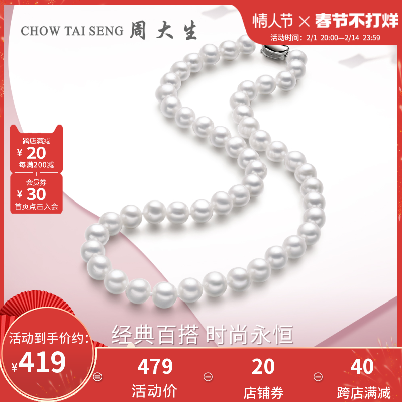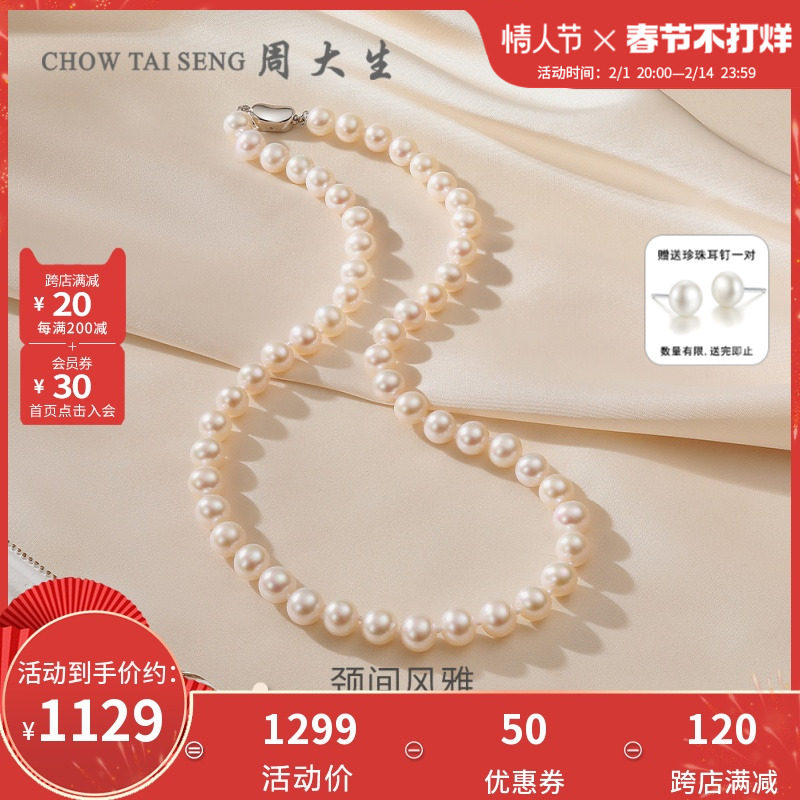 券 100元销量3周大生淡水珍珠项链女扁圆珠套链百搭锁骨颈链情人节礼物送女友