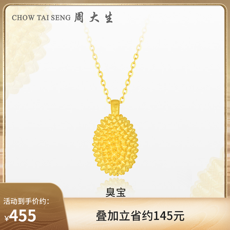 券 150元销量1周大生黄金首饰足金榴莲吊坠3D硬金榴莲忘返项链锁骨链送女友礼物