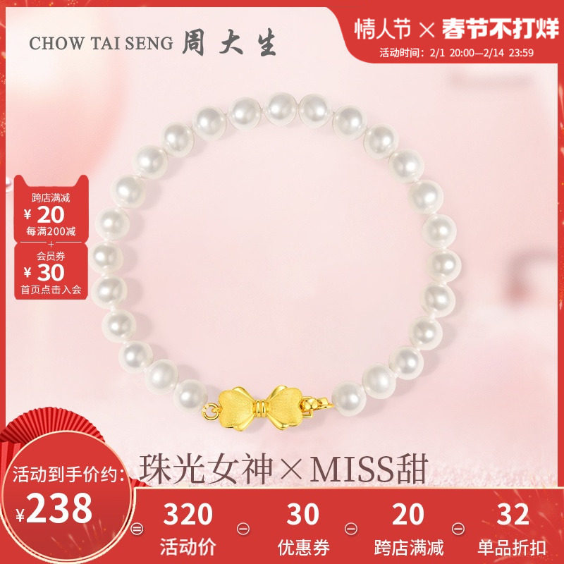 券 37元销量10周大生淡水珍珠手链女S925银蝴蝶结珍珠手串手饰情人节礼物送女友