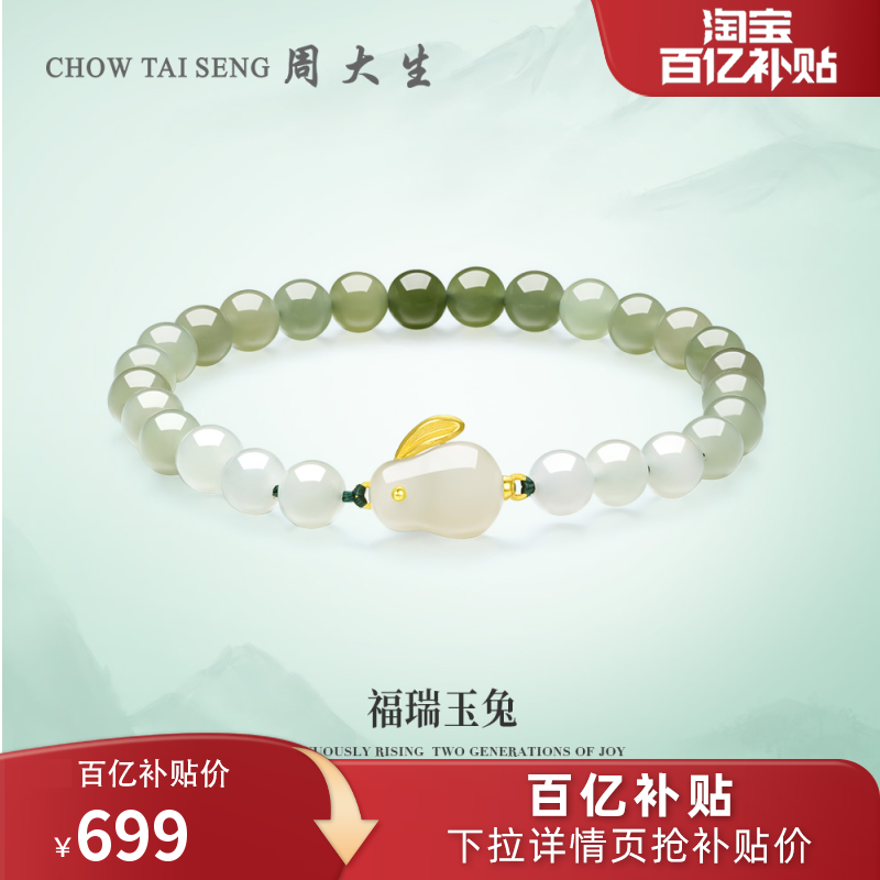 券 553元销量1周大生足金手串女金镶玉玉兔手链渐变有钱兔本命年生肖兔女友礼物