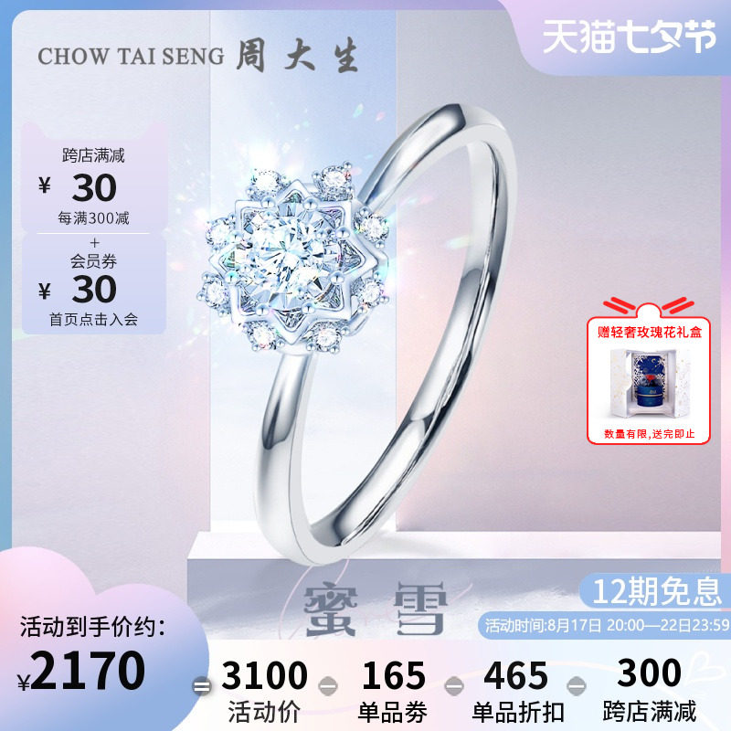 券 221元销量10周大生蜜雪钻戒女18K金手捧花雪花求婚钻石戒指送女友七夕礼物