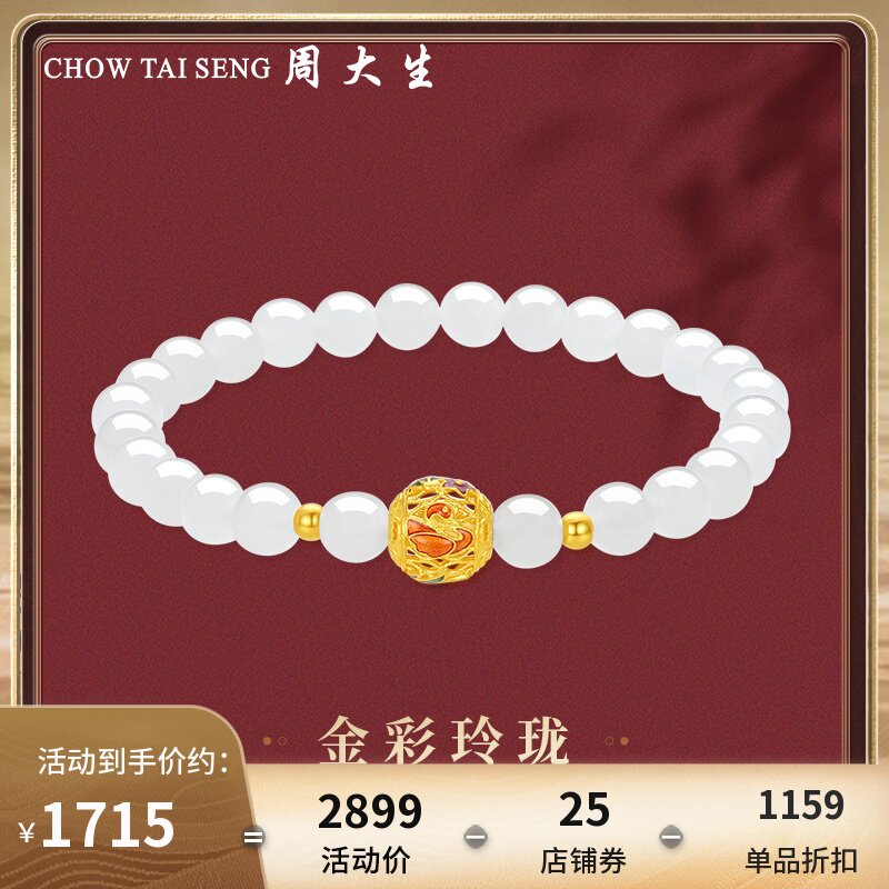 券 150元销量10周大生金镶玉手链女足金珐琅金珠手串和田玉黄金手链转运珠送生日