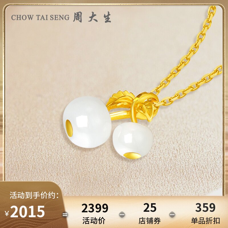 券 150元销量5周大生樱桃金镶玉吊坠女款足金和田玉玉石挂坠官方正品送生日礼物