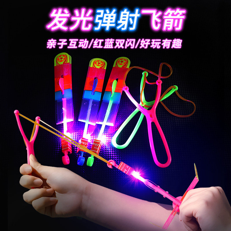 券 2元销量100弹弓飞箭发光冲天小火箭弹射旋转竹蜻蜓飞行器闪夜光儿童户外玩具