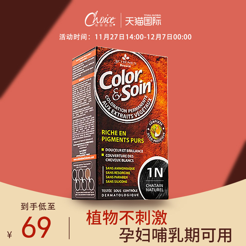 券 23元销量100法国三橡树染发剂植物纯天然无刺激正品品牌染发膏遮白发孕妇可用