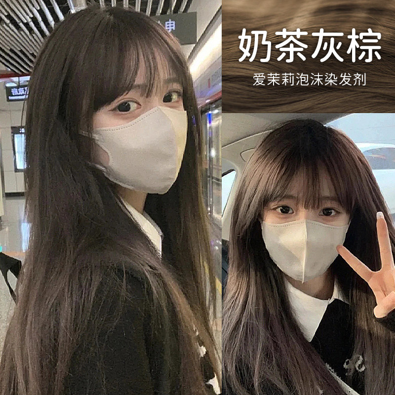 券 13元销量1000爱茉莉奶茶灰棕色染发剂天然无刺激正品泡泡染发剂纯植物染发膏女