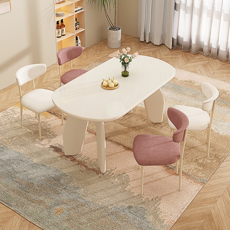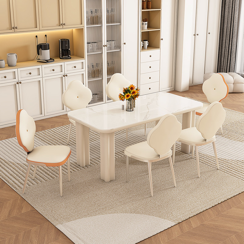 券 150元销量10法式奶油风岩板餐桌椅组合新款小户型家用轻奢现代简约长方形饭桌