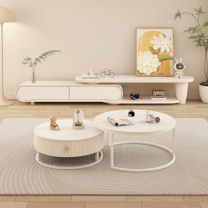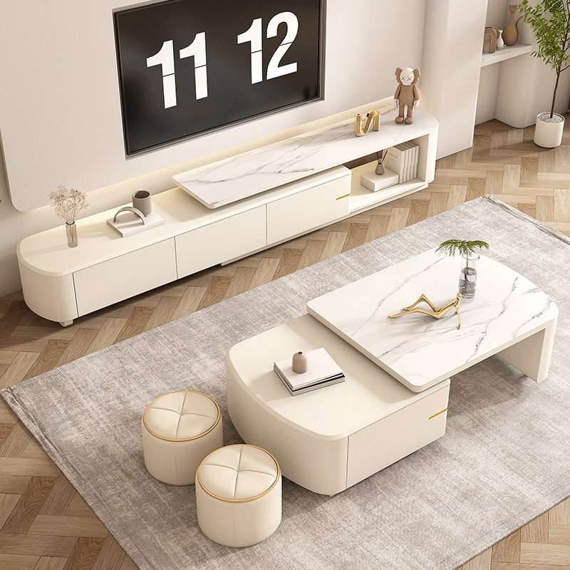 券 75元销量50岩板伸缩电视柜简约现代小户型轻奢折叠奶油风茶几电视机柜组合