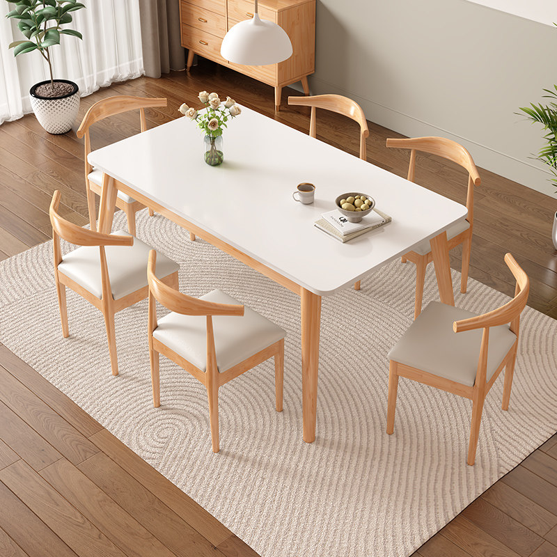 岩板餐桌椅组合家用轻奢简约现代奶油风2023新款长方形小户型饭桌