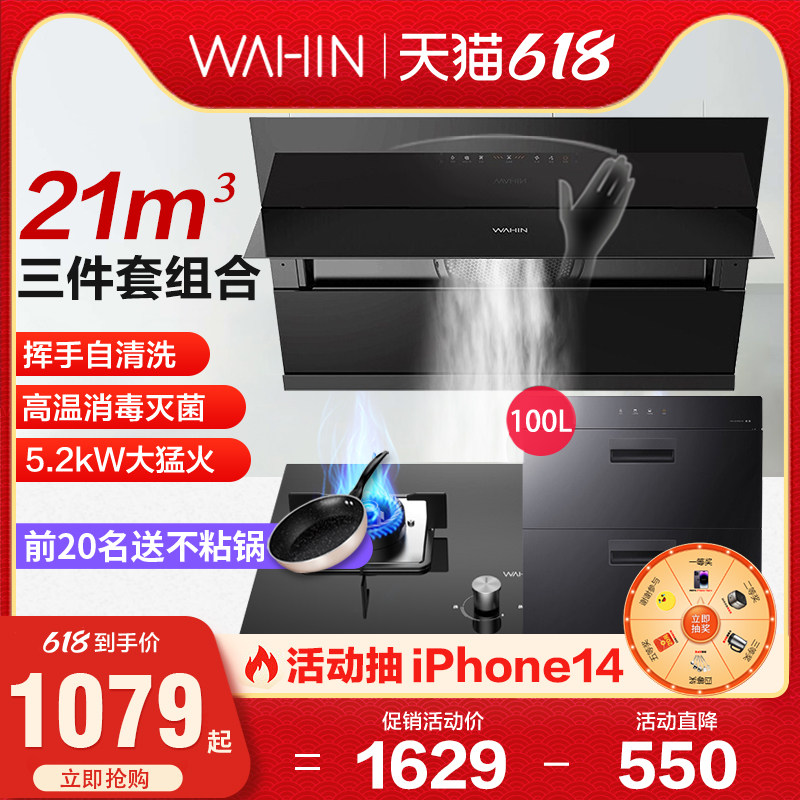 券 550元销量100美的出品华凌抽油烟机燃气灶套餐 消毒柜热水器厨房组合三件套装