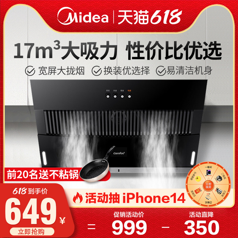 券 400元销量10美的抽油烟机家用厨房出租房侧吸式comfee大吸力官方旗舰店吸烟机