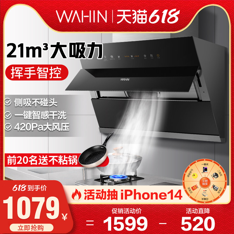 券 549元销量39美的出品华凌抽油烟机家用21大吸力侧吸式挥手自动清洗官方旗舰店