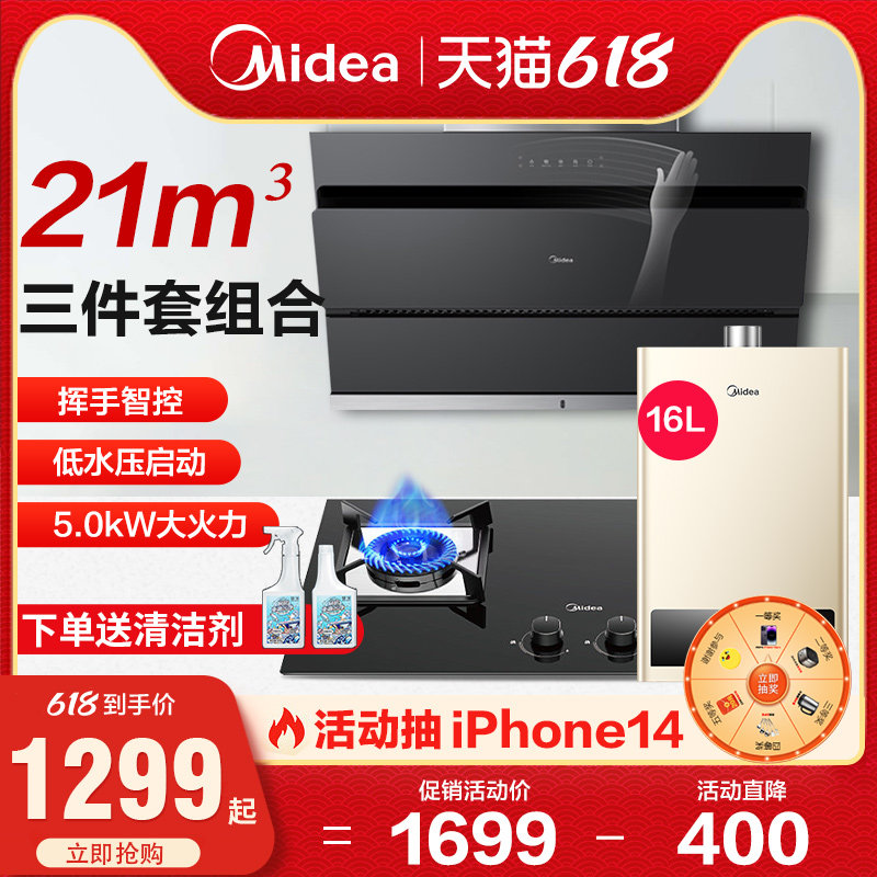 券 400元销量100美的油烟机燃气灶套餐 自清洗欧式大吸力烟灶热水器厨房三件套装