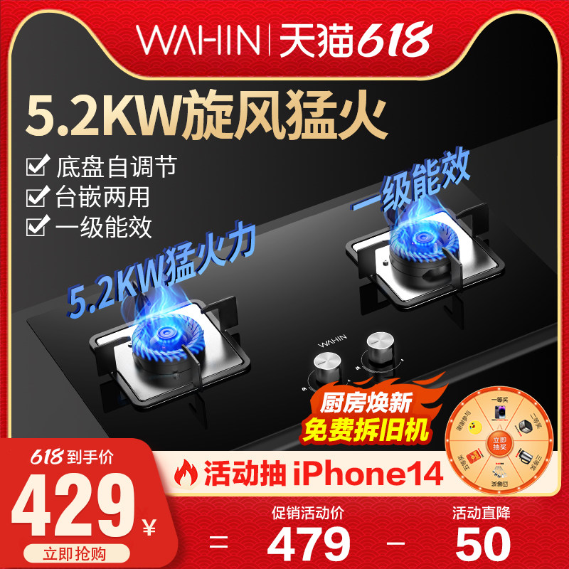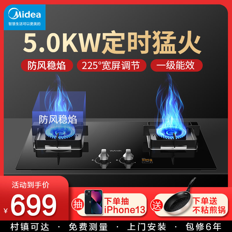 券 200元销量100美的华凌燃气灶双灶家用天然液化煤气台嵌入式官方旗舰店灶具HQ8