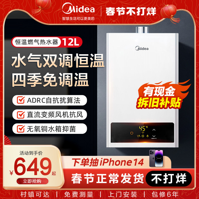 券 116元销量10美的燃气热水器电家用天然液化气12升13升16升恒温强排官方旗舰店