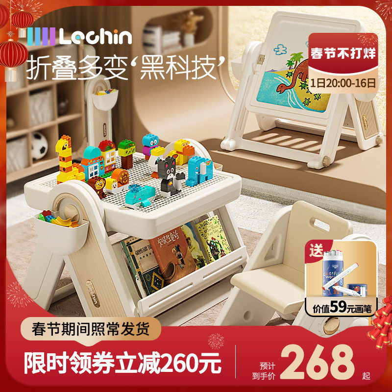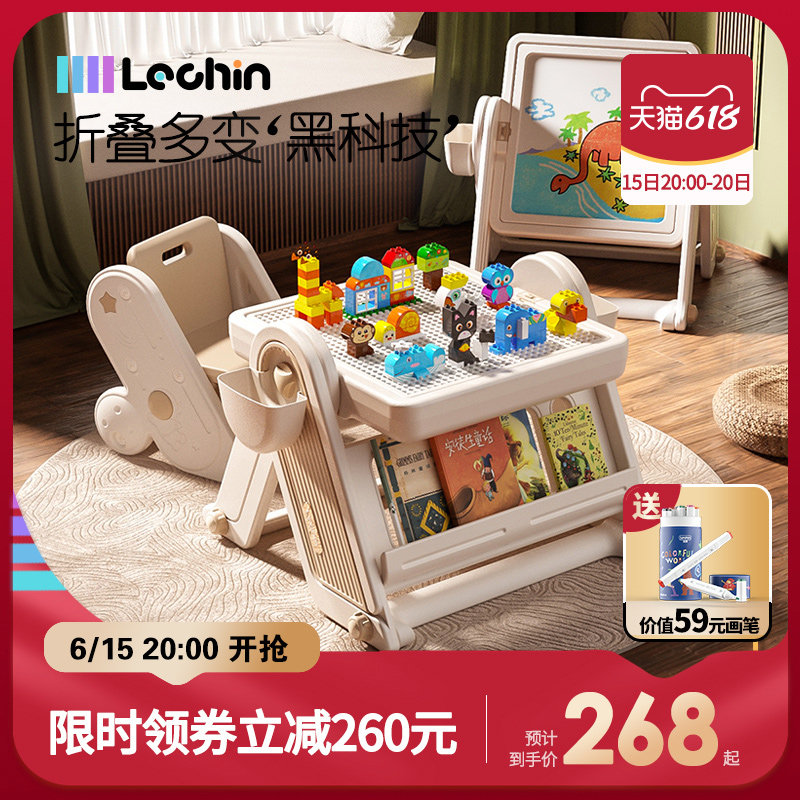 券 210元销量300乐亲儿童积木桌多功能大颗粒折叠画板书架桌子男女孩子收纳玩具
