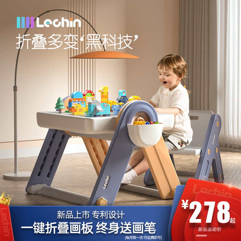 券 200元销量100乐亲多功能积木桌可折叠画板儿童大颗粒拼装玩具益智宝宝男孩女孩