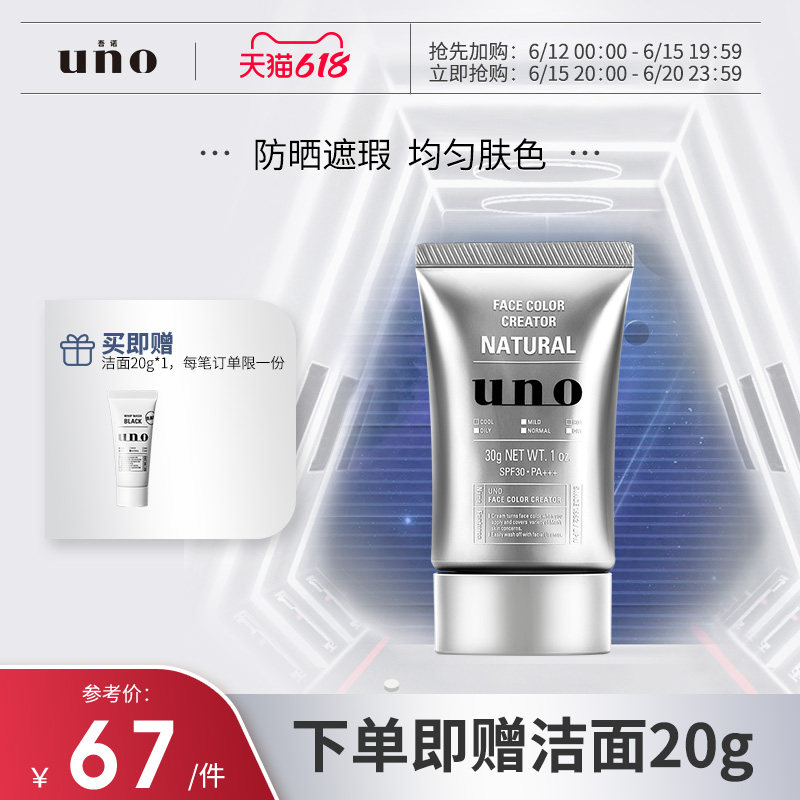 券 35元销量700UNO吾诺 男士素颜霜遮瑕膏痘印BB霜粉底液日本化妆品
