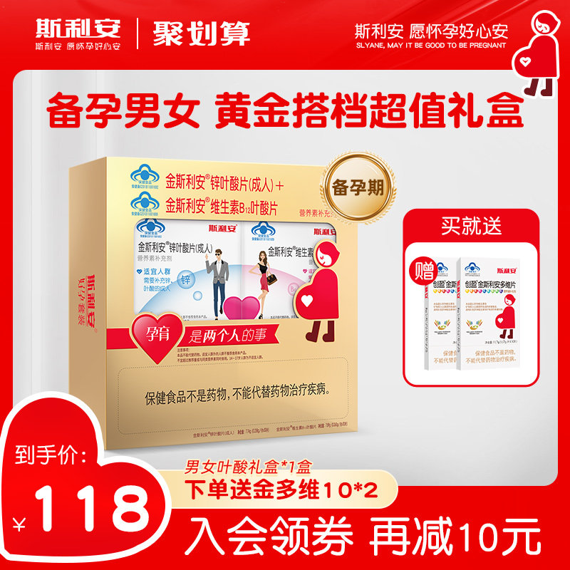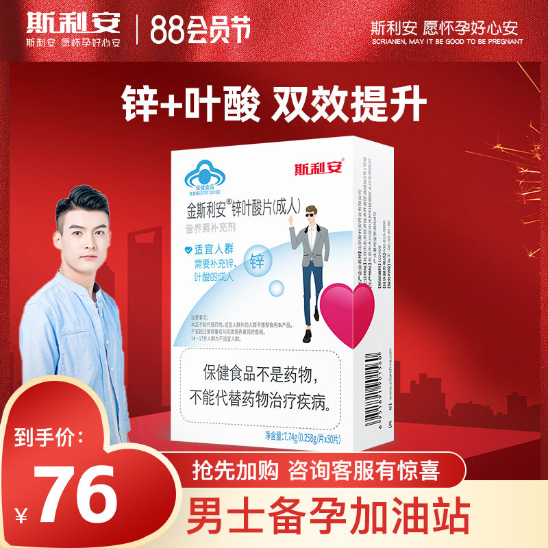 券 10元销量300斯利安锌叶酸男士备孕期叶酸片成人补充精力营养素补锌金斯利安60