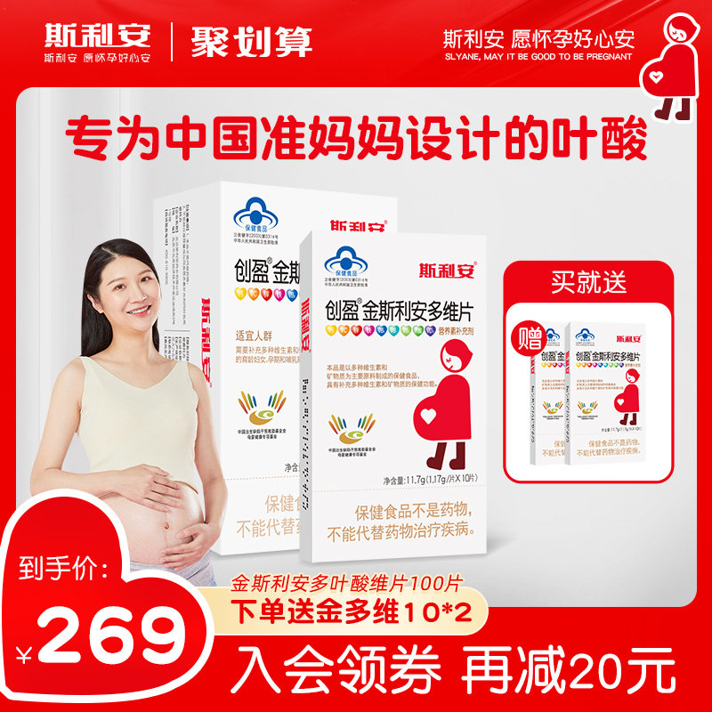 券 30元销量3000斯利安叶酸孕妇叶酸片女士金斯利安多维片备孕孕期哺乳复合维生素
