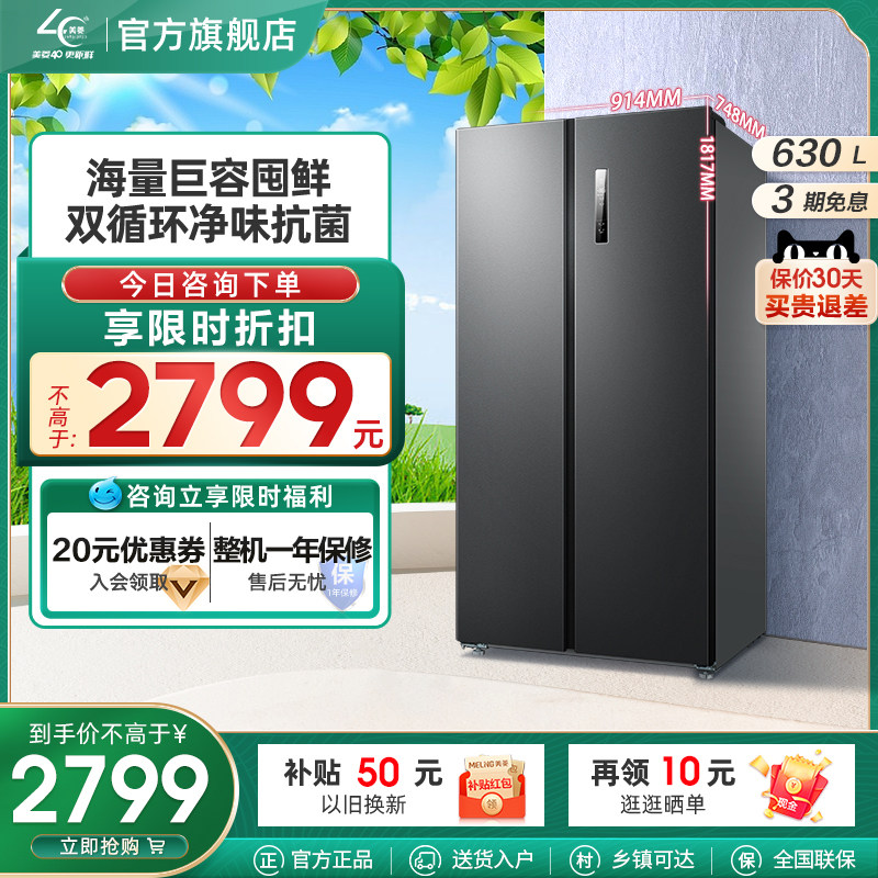 券 10元销量33美菱官方630升对开双开门大容量一级节能变频风冷无霜家用电冰箱