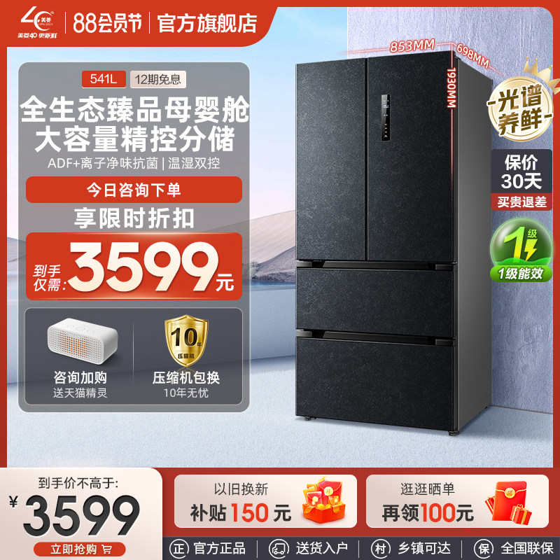 券 20元销量100美菱541L法式对开门四门无霜变频一级节能母婴家用冰箱官方旗舰店