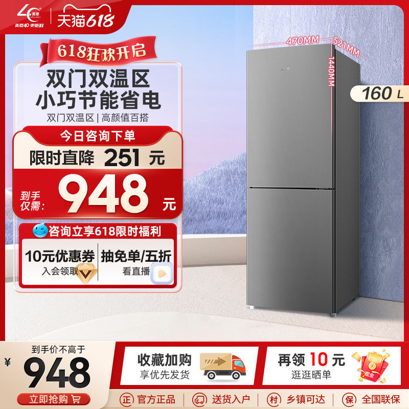 券 510元销量50美菱160L两门小型家用超薄双开门节能宿舍租房冷藏冷冻电冰箱官方