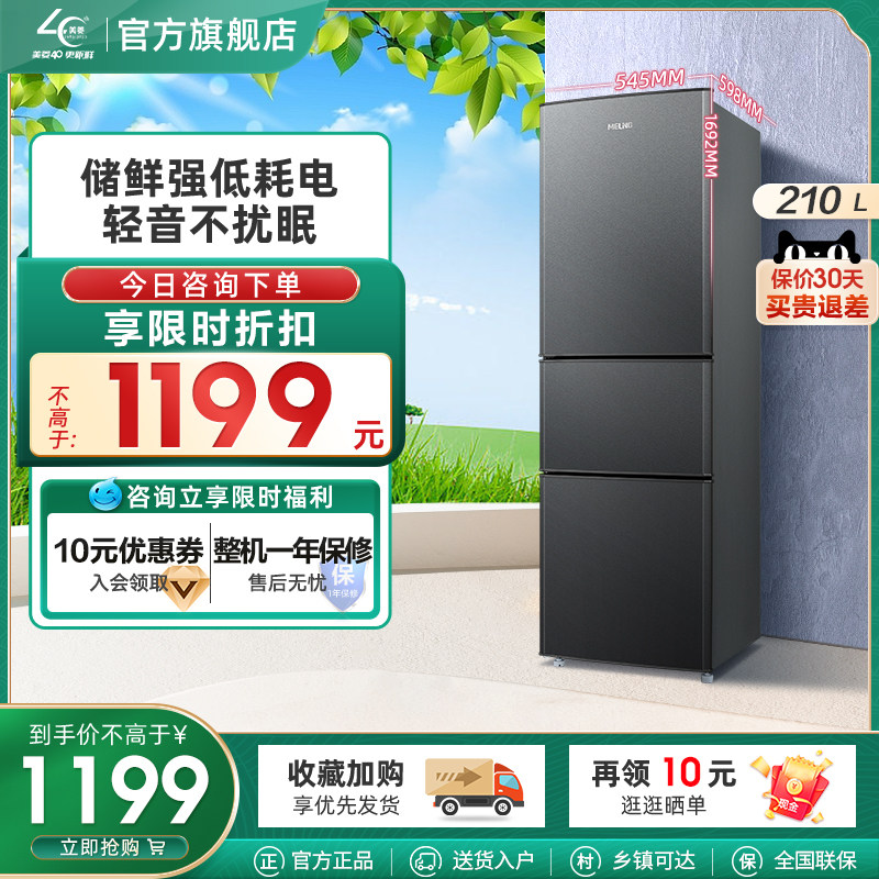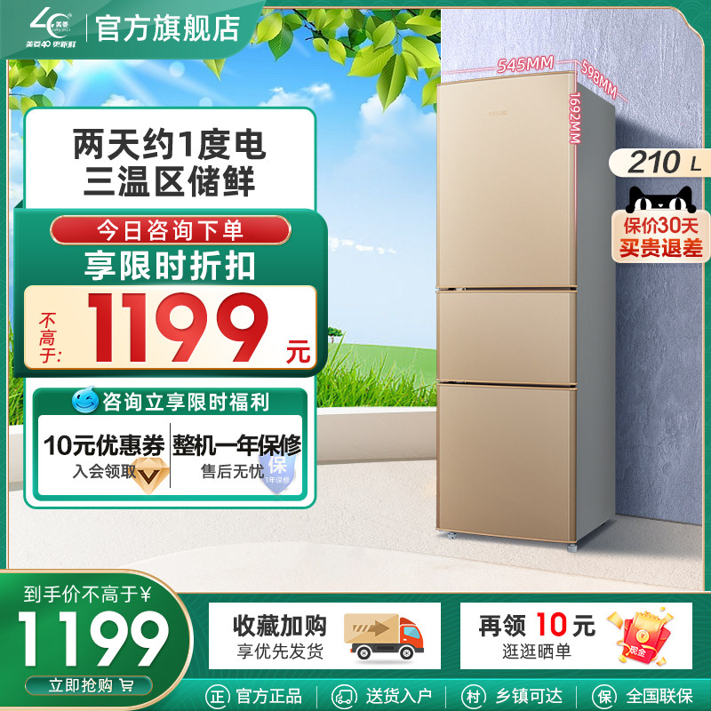 券 50元销量41美菱210L三开门小冰箱家用宿舍租房节能静音冷藏冷冻保鲜小型冰箱