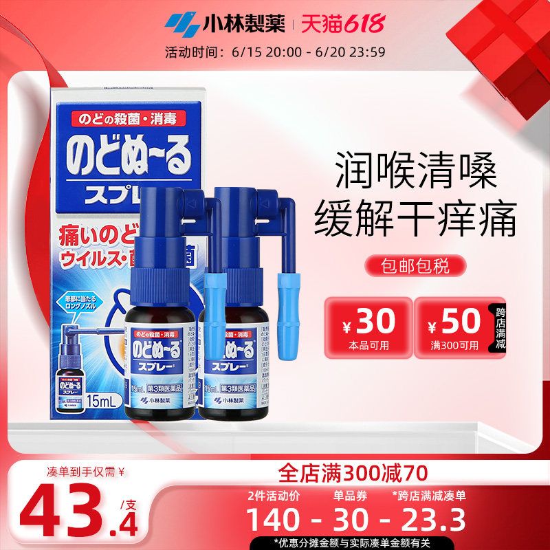 券 50元销量10小林制药缓解咽喉肿痛扁桃体发炎口腔喷喉喷抑菌候咻露15ml*2