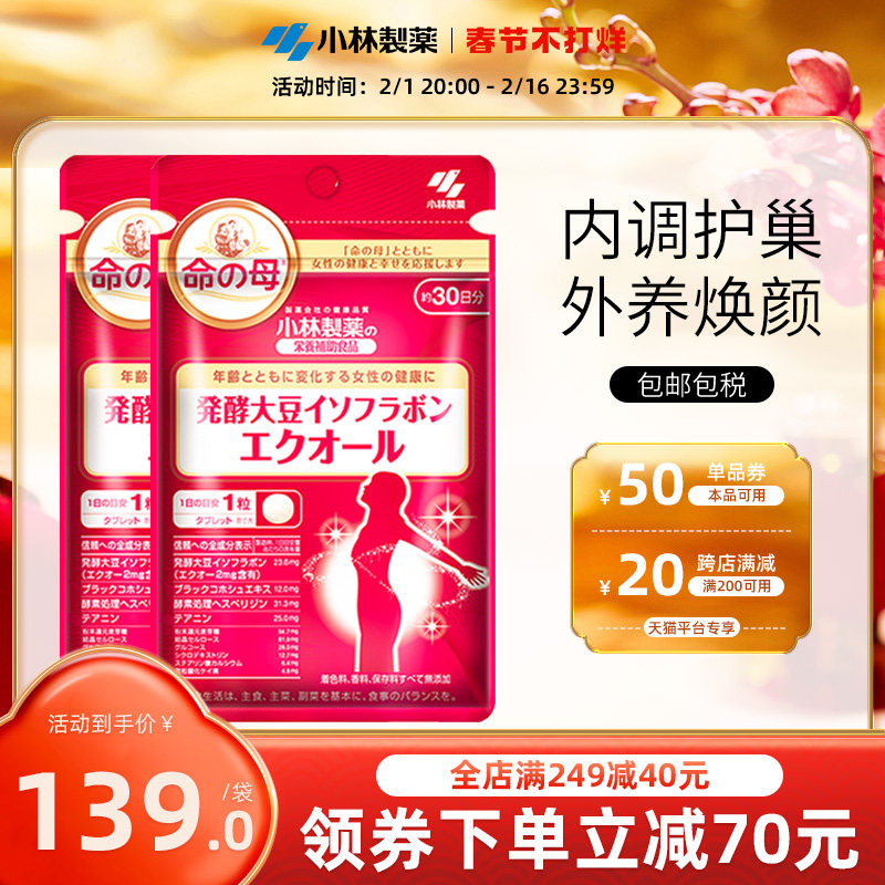 券 30元销量9小林制药日本命之母大豆异黄酮辅助调理平衡雌激素更年期女30粒