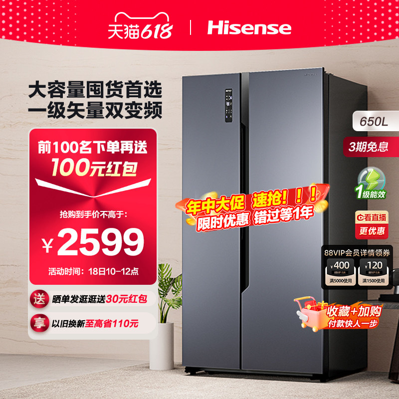 券 600元销量10海信650L双开对开门家用大容量一级双变频风冷无霜冰箱节能官方