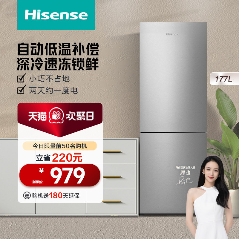 券 20元销量72海信177升小冰箱双门小型租房两门冰箱家用节能低噪宿舍冷藏冷冻