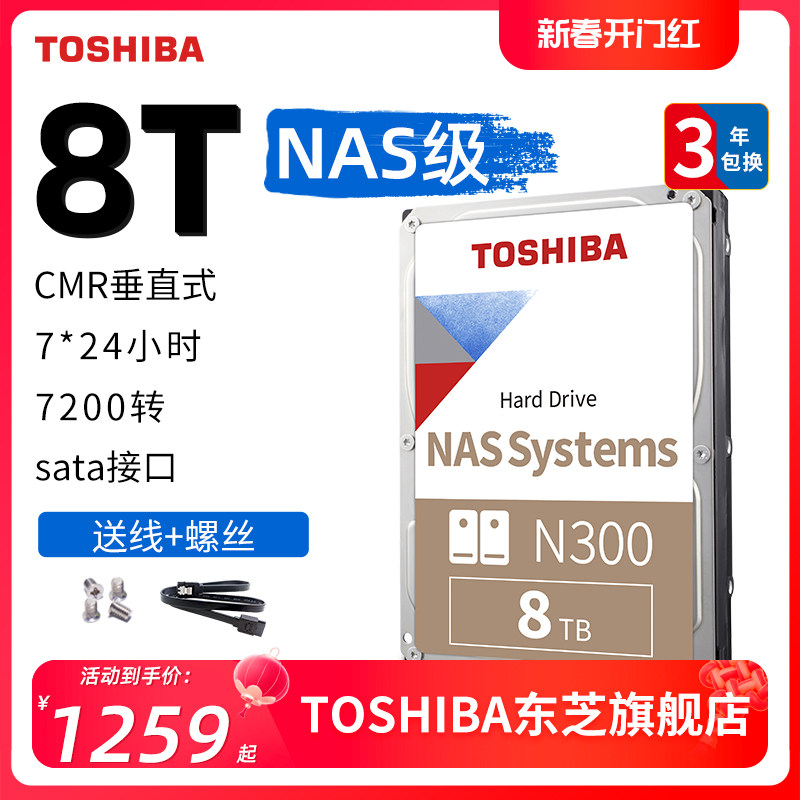 券 100元销量50东芝nas硬盘8t n300 7200垂直cmr机械硬盘 网络存储台式监控7*24