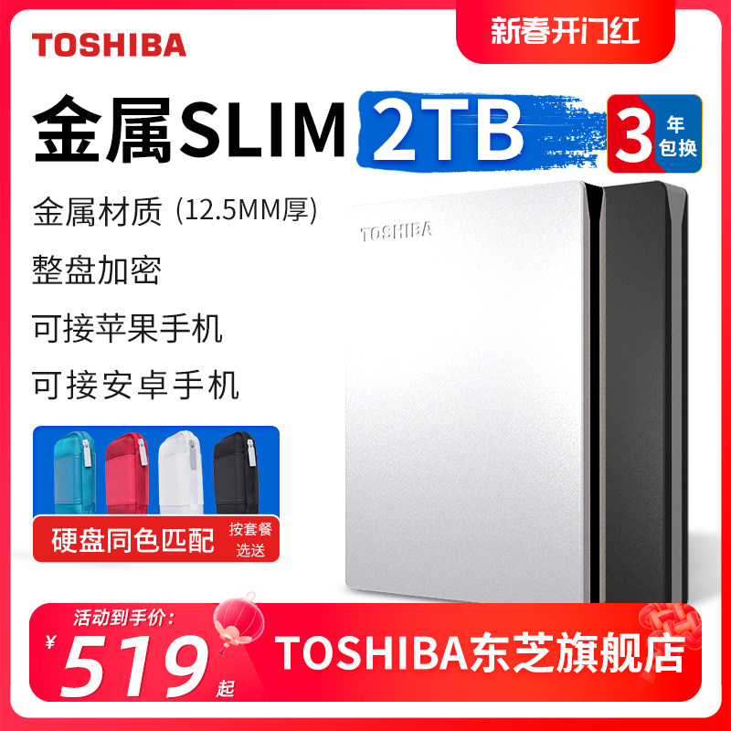 券 30元销量50东芝移动硬盘2t slim 金属 整盘加密 手机苹果电脑外接机械非固态
