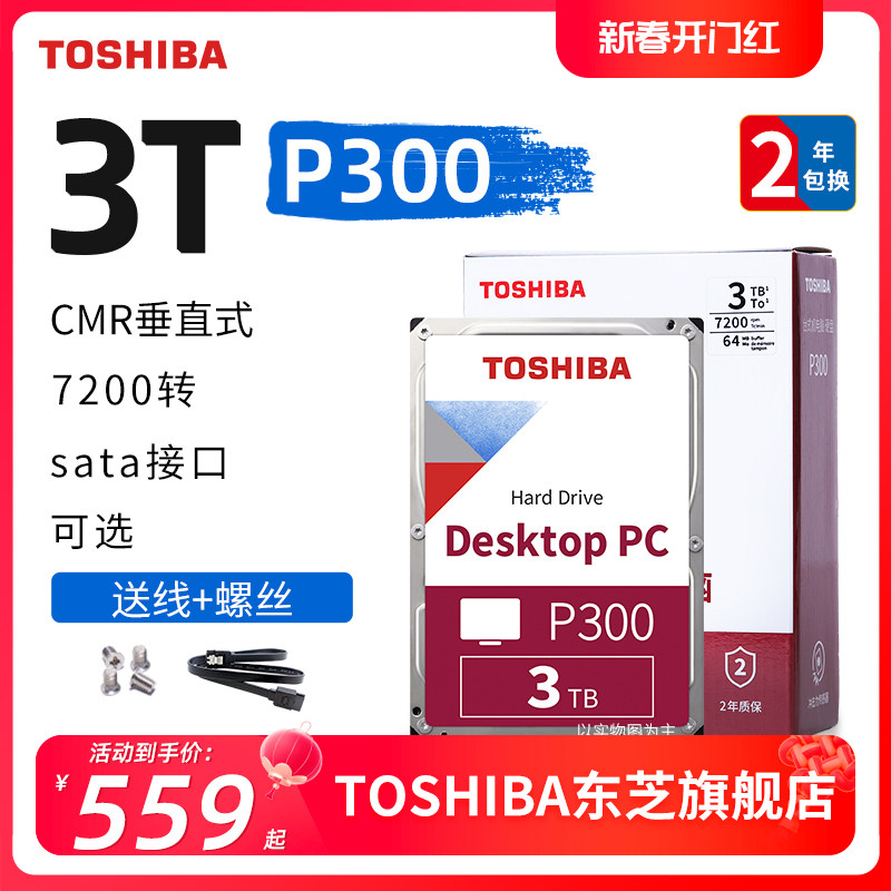 券 41元销量10东芝台式机硬盘3t p300 7200 垂直cmr 机械硬盘 监控 dt01aca300