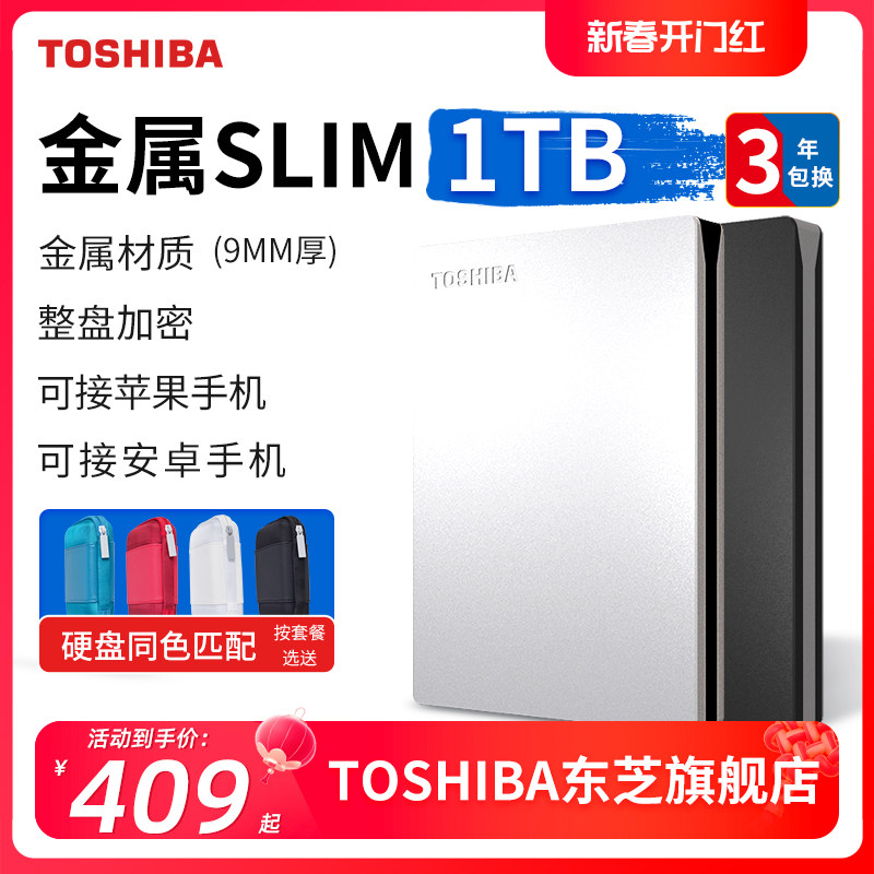 券 23元销量10东芝移动硬盘1t slim 金属 整盘加密 手机苹果电脑外接机械非固态