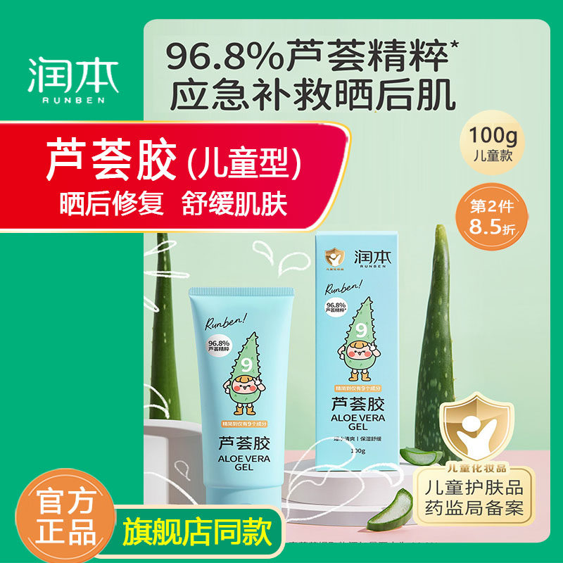 润本芦荟胶儿童晒后修护舒缓保湿凝露婴儿面霜宝宝防晒霜润肤乳
