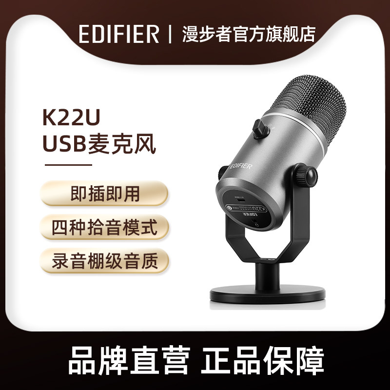 券 70元销量1000EDIFIER漫步者K22U直播网课会议USB麦克风录歌话筒抖音主播网卡