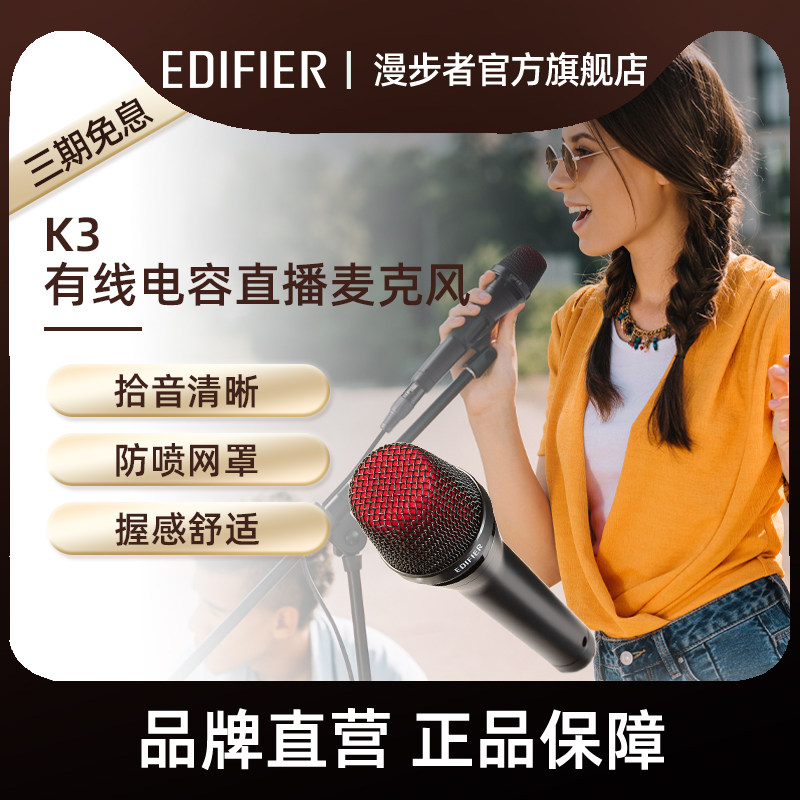 券 50元销量100EDIFIER/漫步者K3有线电容麦克风主播直播话筒收音ktv卡拉ok会议