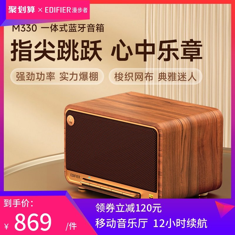 券 120元销量200EDIFIER漫步者M330无线蓝牙音箱便捷式高音质复古音响家用低音炮