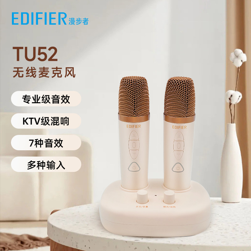 券 40元销量60EDIFIER漫步者TU52无线麦克风KTV混响伴唱直播会议话筒主播